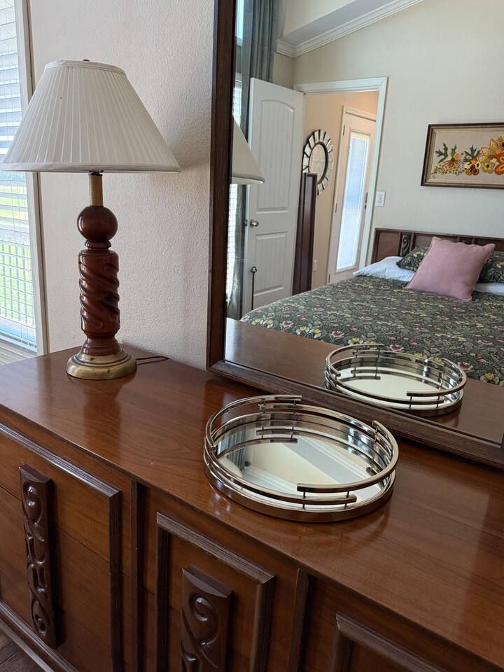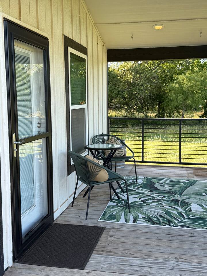 A private tiny home with a queen bed, full-size kitchen, and back-porch overlooking the pond. We're a half mile off State Highway 6 down a county-maintained gravel road. Hosts occasionally work on-site to care of cattle and maintain a small 4-space RV park at the other end of the property. Expect wildlife including the occasional spider, scorpion, or possibly a snake. Amenities: * Founding Father’s Coffee * Full Leaf Tea Company Wellness Teas * Rustic Strength Natural Bath and Body products * Pack-and-play playpen (if requested) * Toddler bed (if requested) * High Chair (if requested) The area: We’re a 10 to 15-minute drive to the local grocery store and offer pre-visit shopping to have anything you might need (details in our digital guidebook). Red Gap Brewery, Blue Duck Winery, Muddy Mikes, and La Finca are in Cisco. The amazing Majestic Theatre is located in Eastland. While you should expect small-town restaurant choices, you can always cook things we raise here at Lallygag Lane.